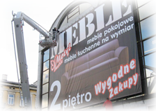 Reklama zewnętrzna to niezwykle zróżnicowane realizacje reklamowe. Wykonujemy i montujemy banery, siatki, plansze, szyldy, plansze kierunkowe i unijne, flagi i maszty. Oklejamy billboardy, witryny. Wykonujemy całe fasady reklamowe. Wykonujemy megabanery i megasiatki na wielkogabarytowych konstrukcjach. Konstrukcje również wykonujemy, dostarczamy i stawiamy w miejscu przeznaczenia.